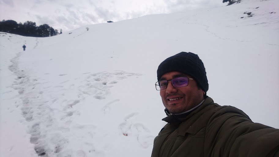 The first km was the toughest. It was over a very steep gradient straight up from the Barsu village. Moreover, it started to drizzle. We were panting and wheezing in no time. Once we were past the tough slope, it gradually decreased, but never levelled. The rocky path didn't help. We had to break frequently to catch our breath, but soldiered on. The weeks of gym-ing helped otherwise we would have been down on our knees. Dayara is supposed to be a popular trek, but at this time we were the only ones on this trail. It hadn't snowed much in the past month so that cancelled the routine trekkers' visit. Newbies do not travel to higher altitudes in Feb, so we had the place all to ourselves, just the way we liked it. Anuj wasn't the talkative kind. We hoped that he was a better cook than a talker. We were not in a talking mood as well. We were quite busy inhaling lungfuls of air.